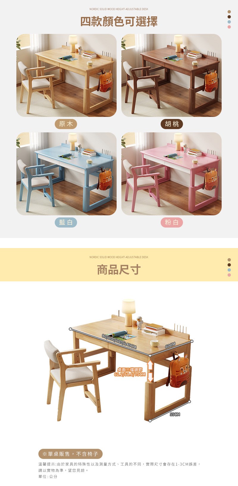 【HappyLife】北歐風實木升降桌 140公分 Y11946粉白