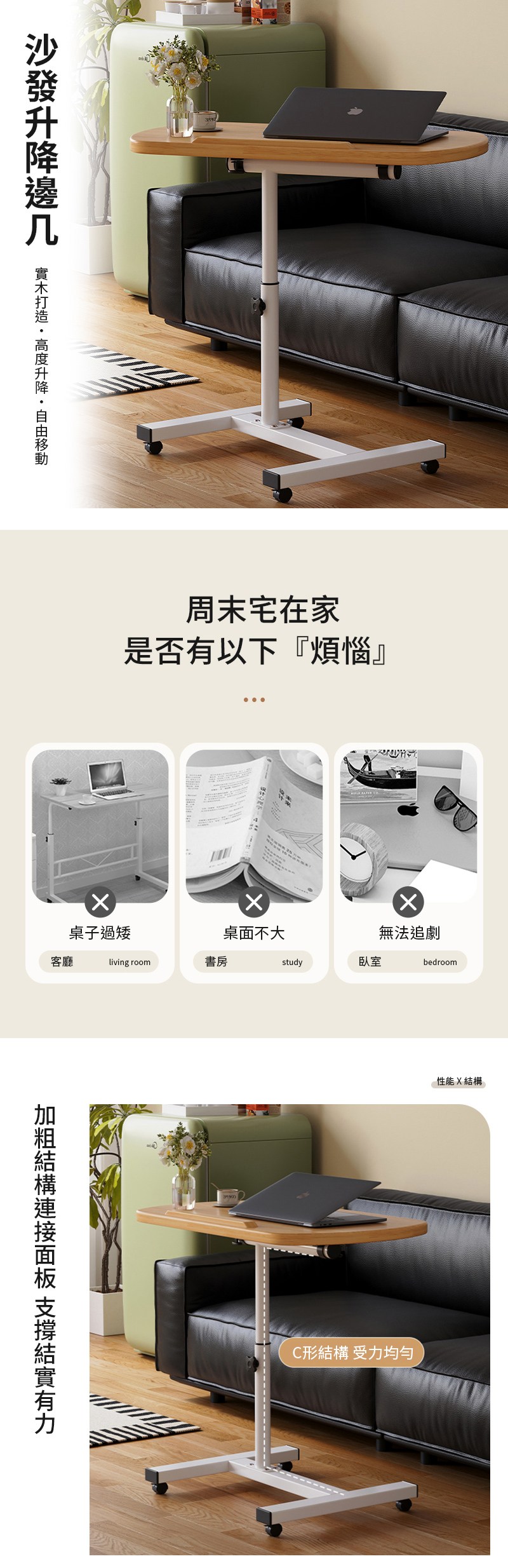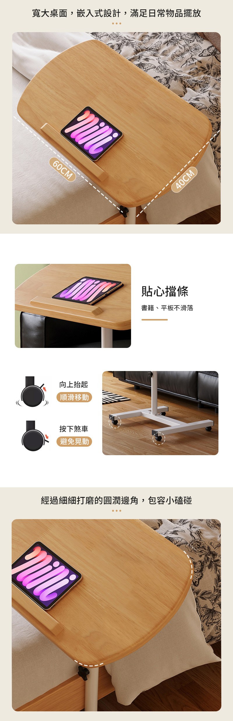 床邊移動升降桌 60cm-85cm可調節 鋼架穩固 圓潤邊角設計 白楓木