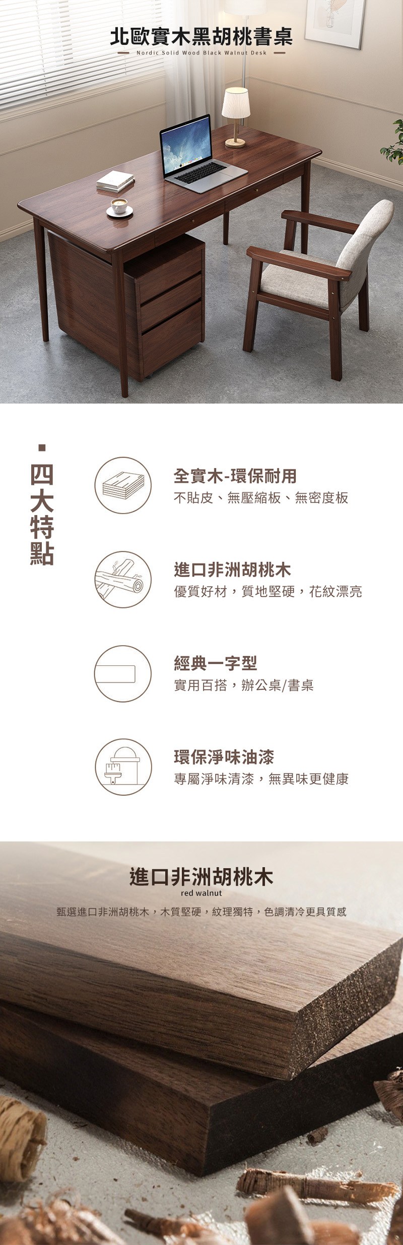 【HappyLife】北歐實木黑胡桃書桌 120公分 Y11956F