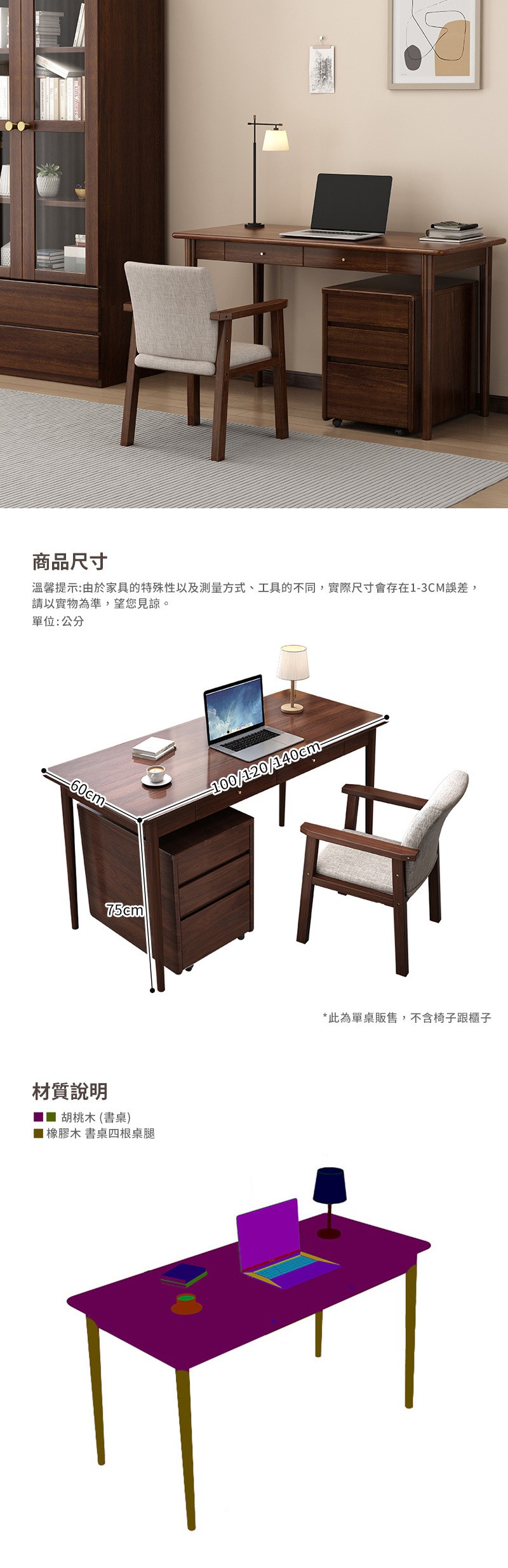 【HappyLife】北歐實木黑胡桃書桌 100公分 Y11955F