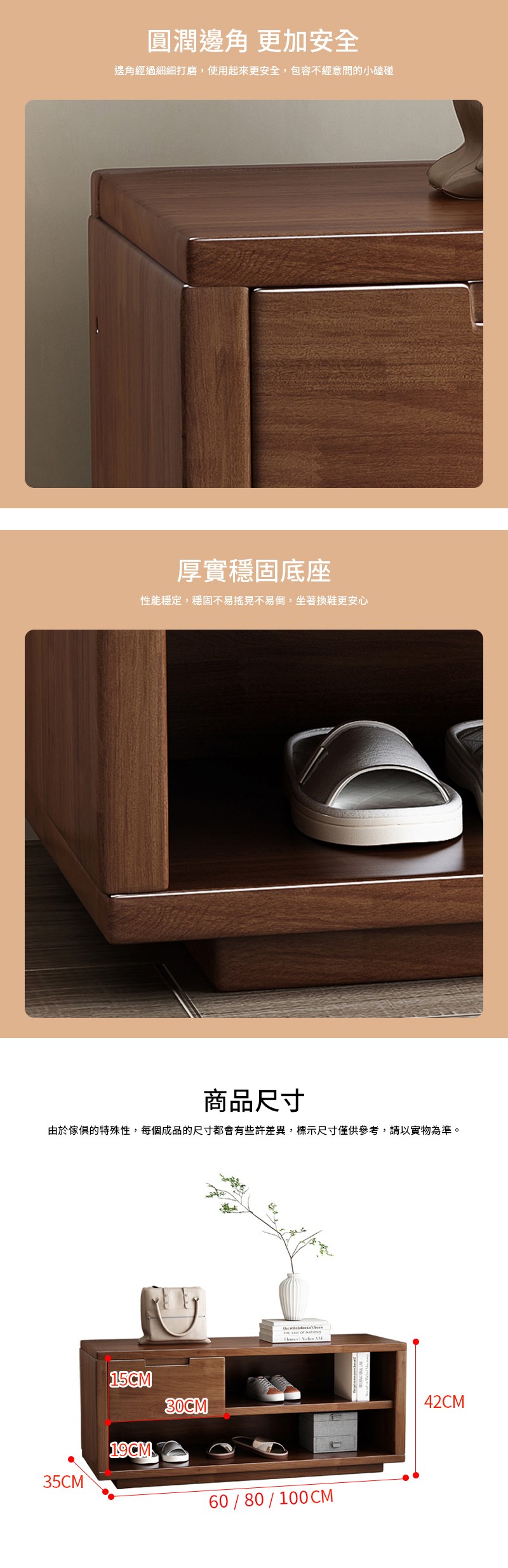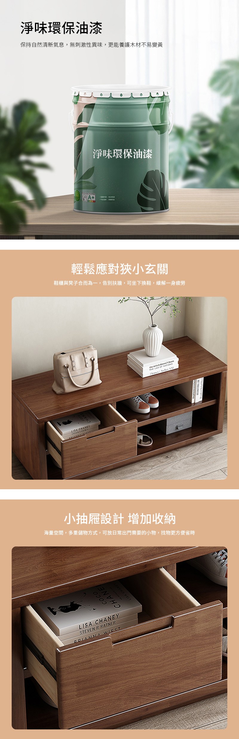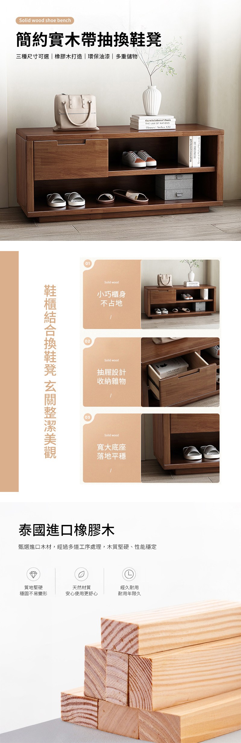 【HappyLife】簡約實木帶抽換鞋凳 80公分 Y11976胡桃