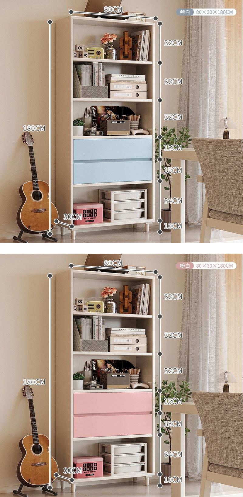 【HappyLife】北歐實木書櫃 80公分 Y11985藍白