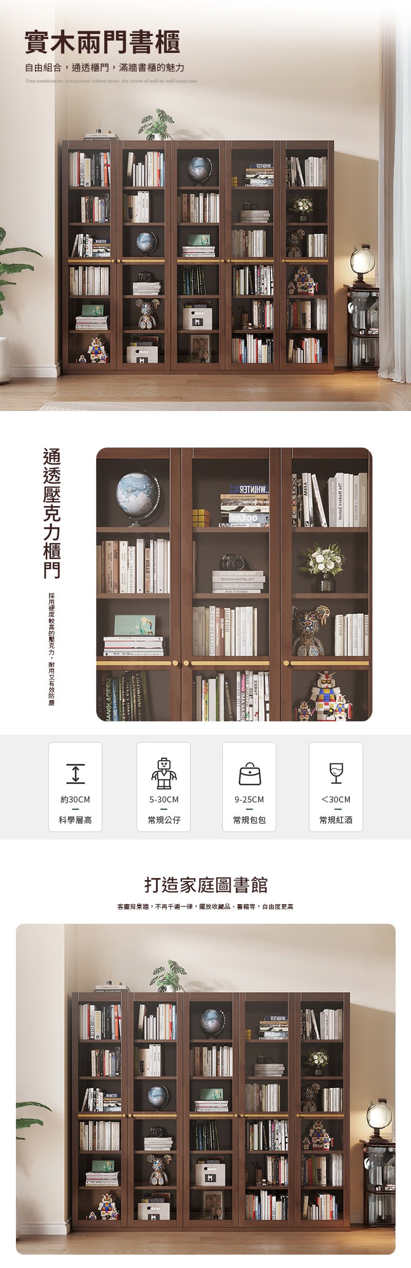 家用帶鎖推拉門書櫃防塵玻璃展示櫃多層落地 書架 落地 收納櫃 置物架qxm8231