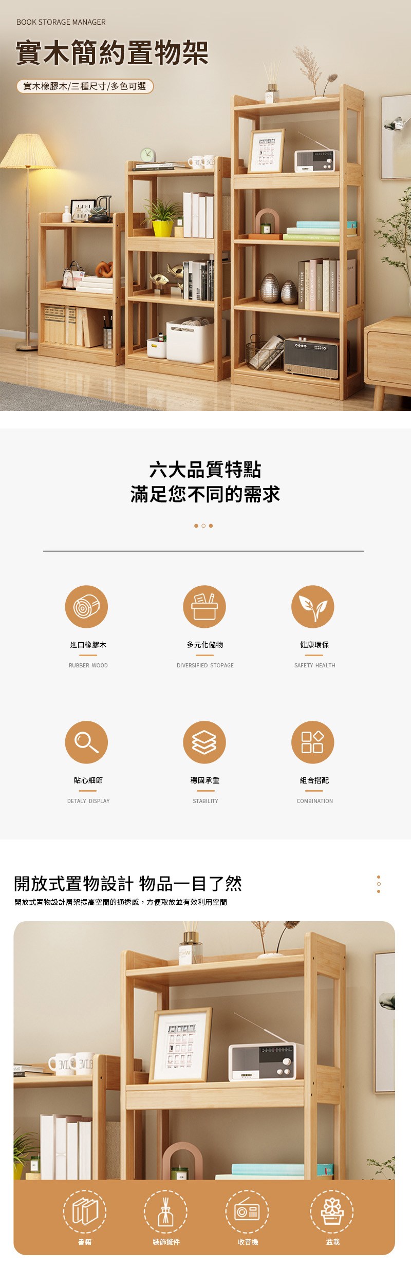 RICHOME 層架置物架 三層架 展示架 學生書架 收納架 多功能置物櫃 top SH481/SH480/SH479