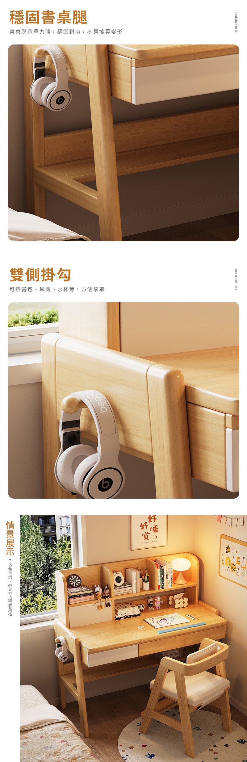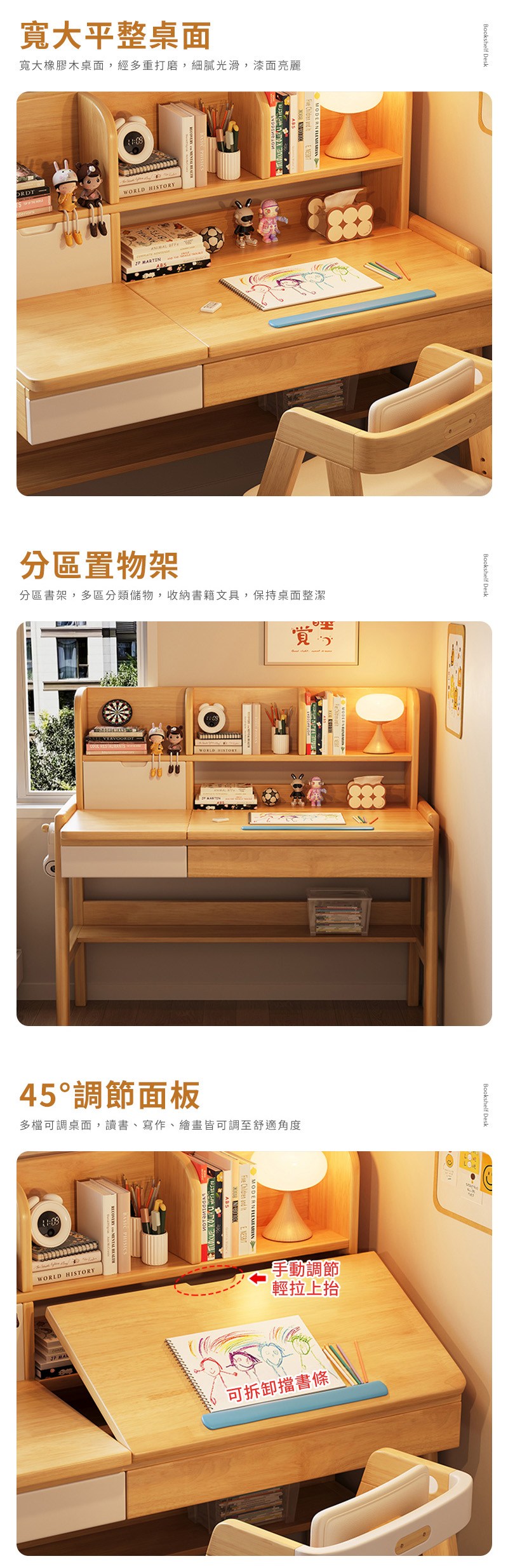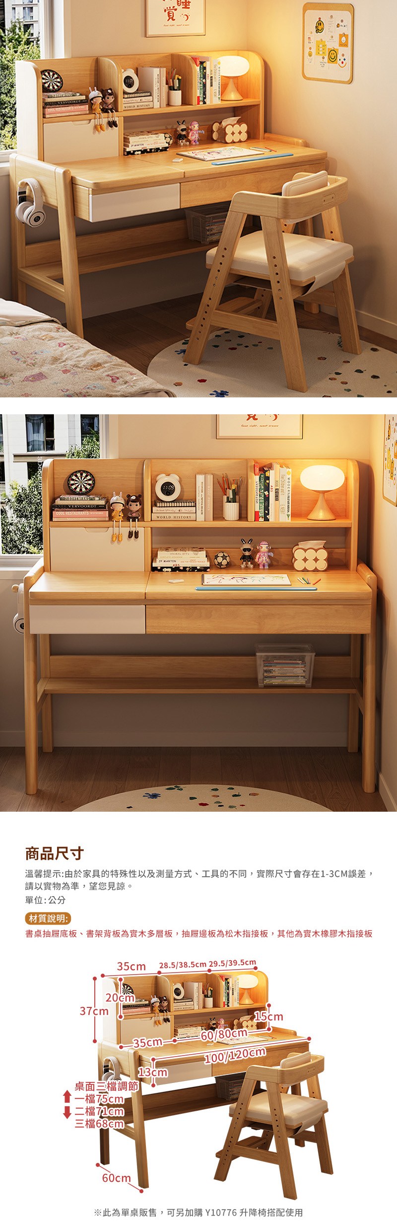 【HappyLife】實木兒童翻蓋書架升降書桌 120公分 Y12054原木