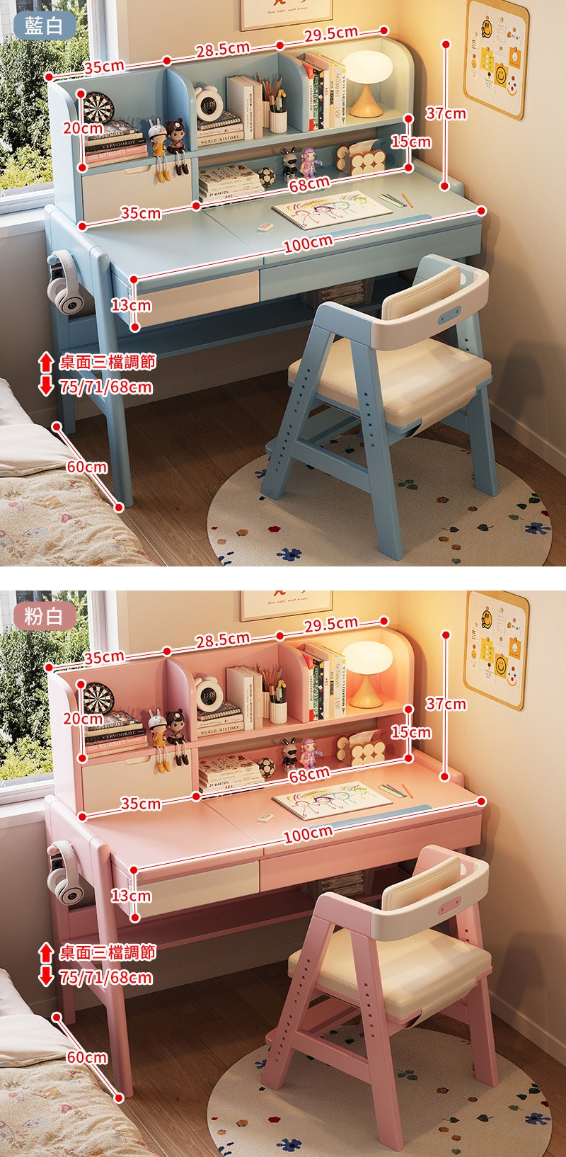 【HappyLife】實木升降書架書桌 100公分 Y12146藍白