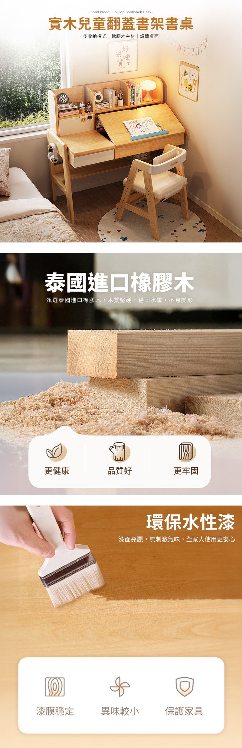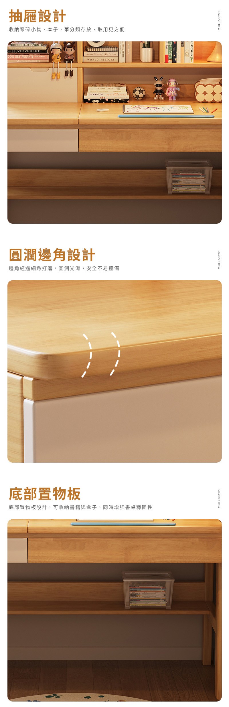 點我下載【HappyLife】實木兒童翻蓋書架升降書桌 120公分 Y12054粉白