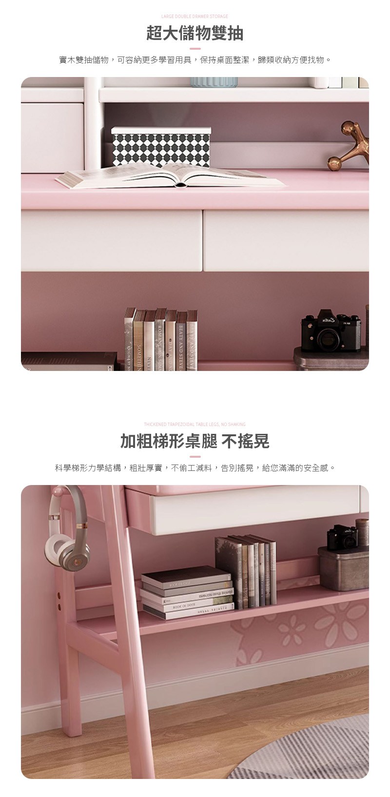 E-home GUGU古古多功能書架雙抽陪讀兒童升降成長桌-寬120cm-三色可選粉紅