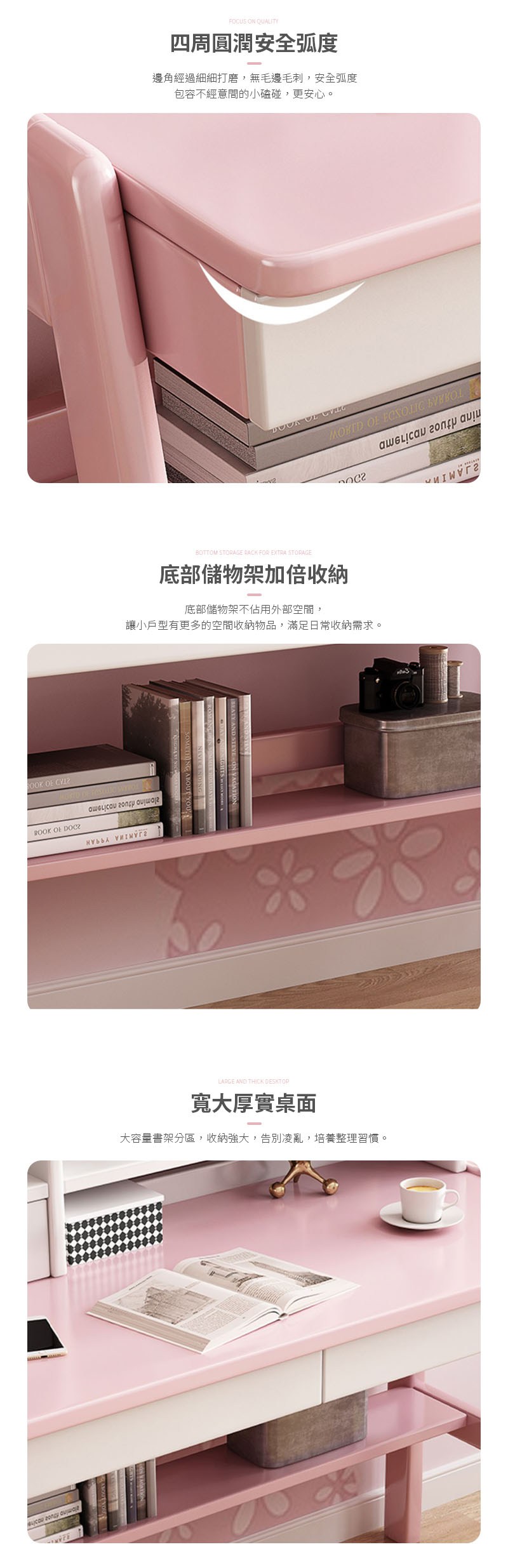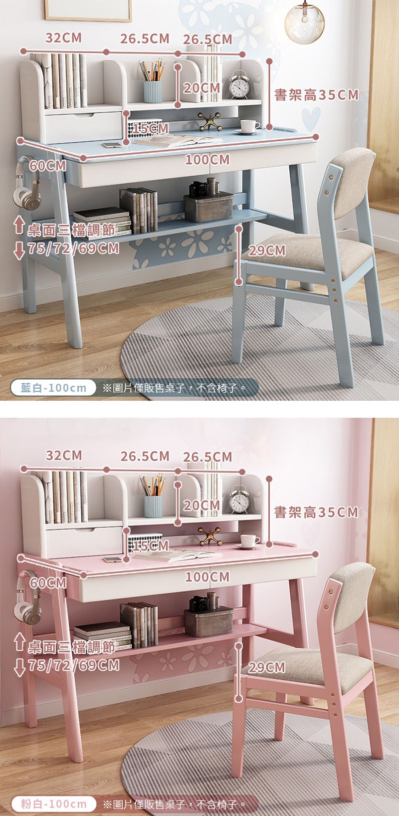 E-home ZUZU祖祖彩邊書架單抽多功能陪讀兒童升降成長桌-寬100cm-三色可選粉紅
