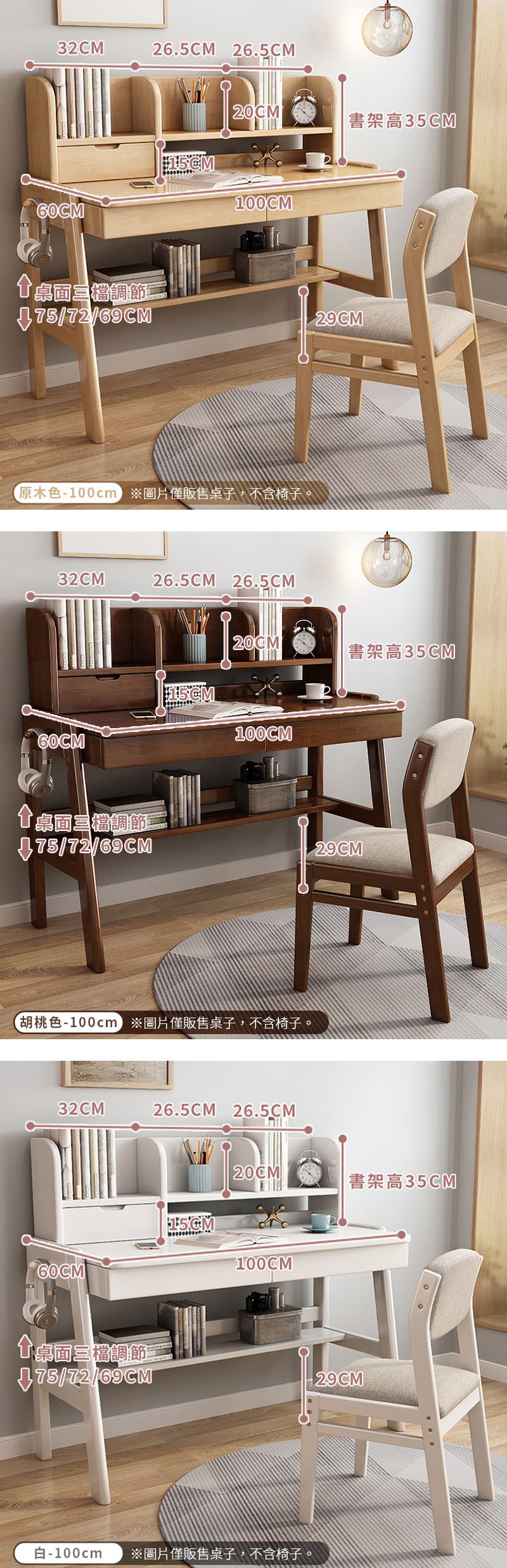 HappyLife 全實木抽屜櫃書桌 100x60x75cmY11110