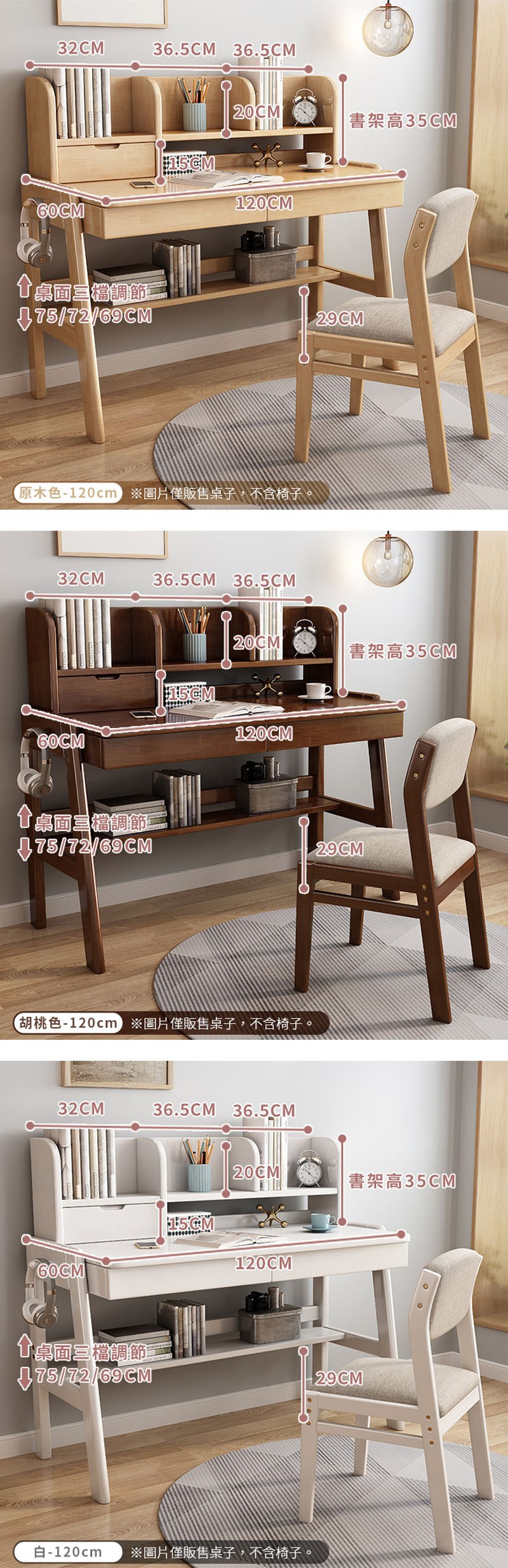 點我下載【HappyLife】實木升降書架書桌 120公分 Y12059白