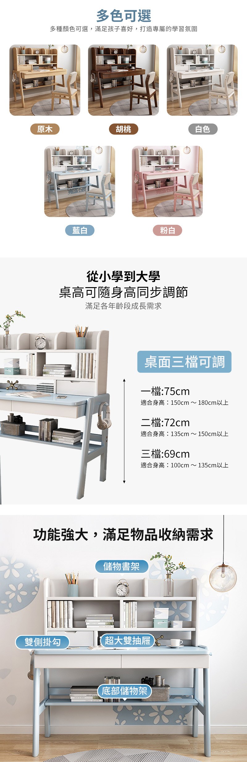 【HappyLife】實木升降雙層書架書桌 100公分 Y12061藍白