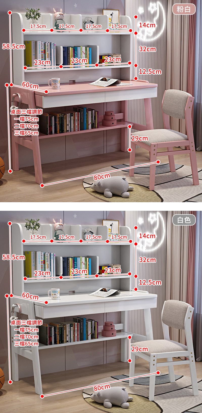 【HappyLife】實木加高書架書桌 70公分 Y12078粉白