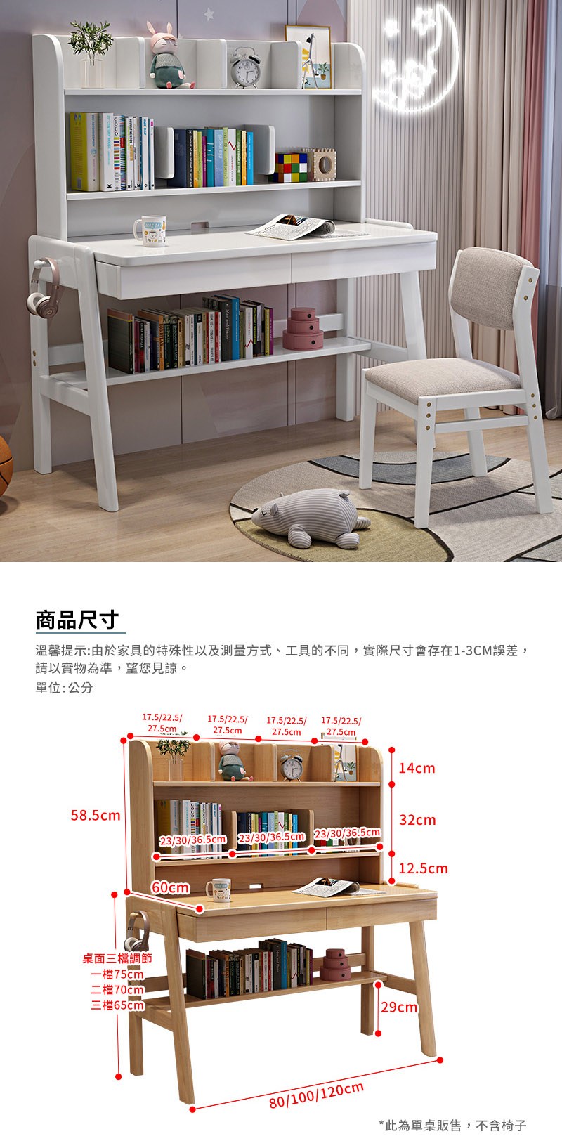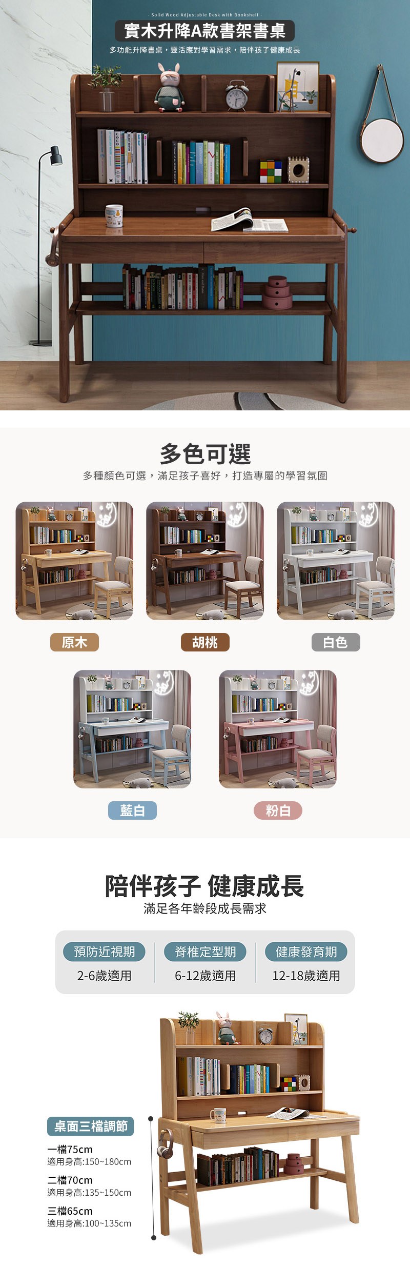 【HappyLife】實木升降書架書桌 100公分 Y12146藍白
