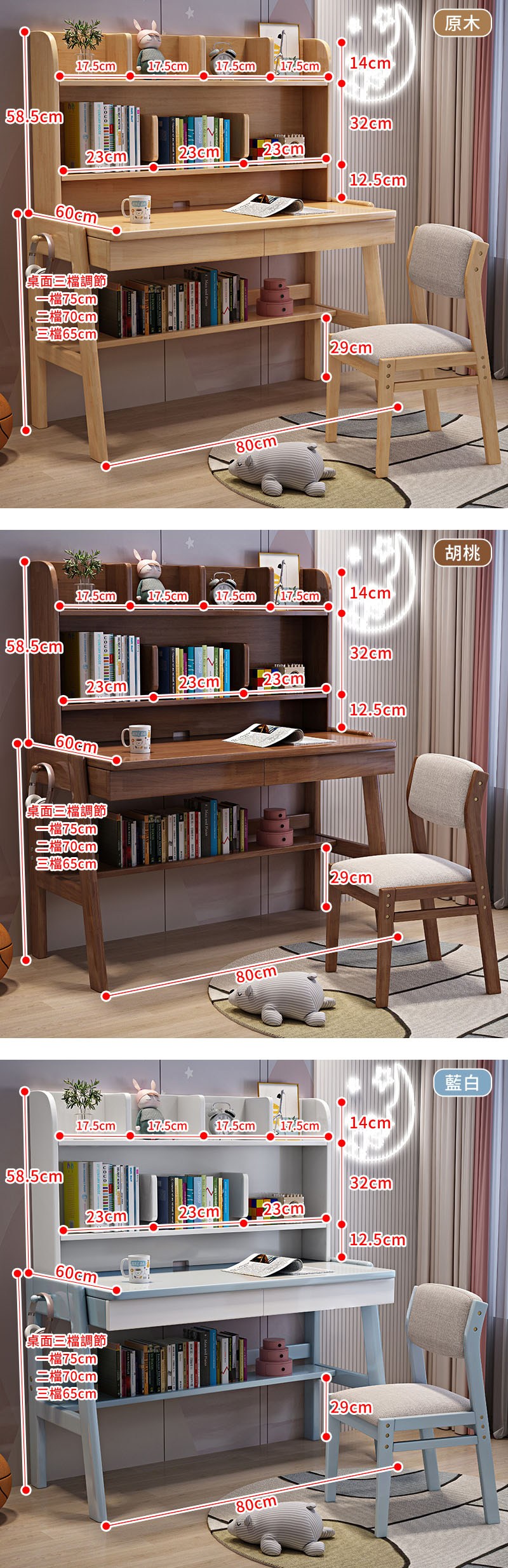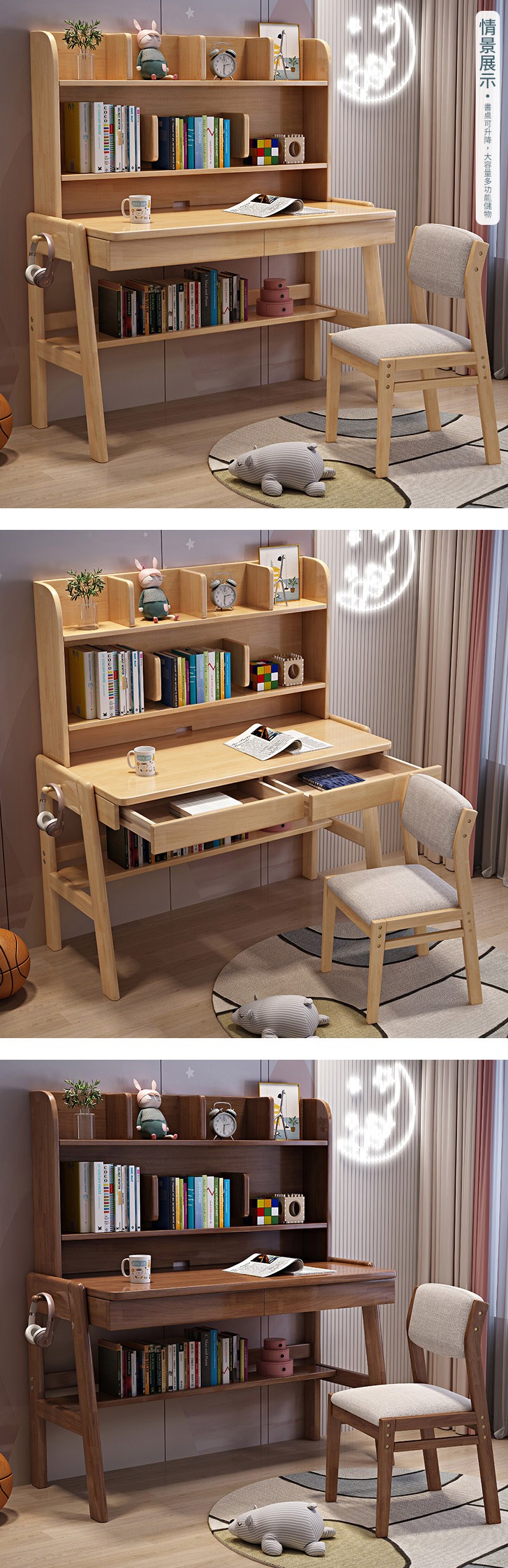 【HappyLife】實木升降簡約書架書桌 80公分 Y12066原木