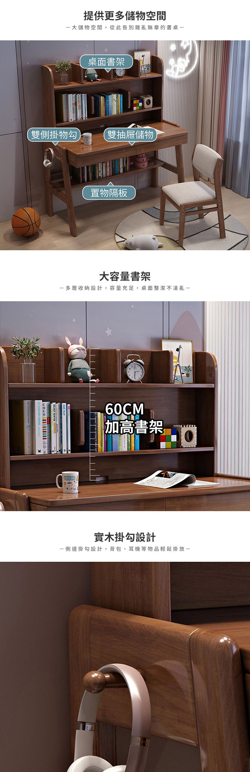 【HappyLife】實木加高書架書桌 70公分 Y12078胡桃