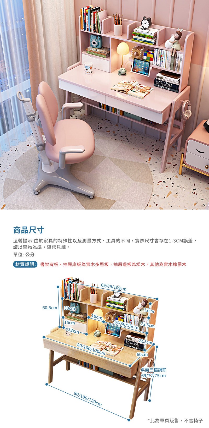 【HappyLife】實木升降簡約書架書桌 80公分 Y12066粉白