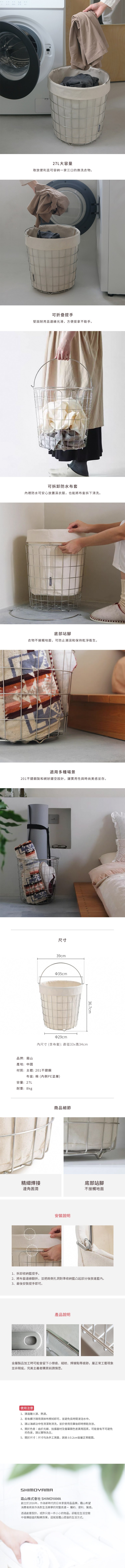 【日本霜山】提把式不鏽鋼洗衣籃/置物籃(附防水布套)-27L
