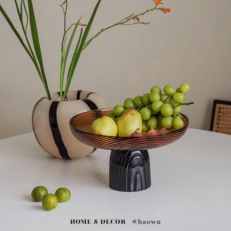 費靈家居現代簡約異形不規則水波紋玻璃大果盆 輕奢客廳創意果盤