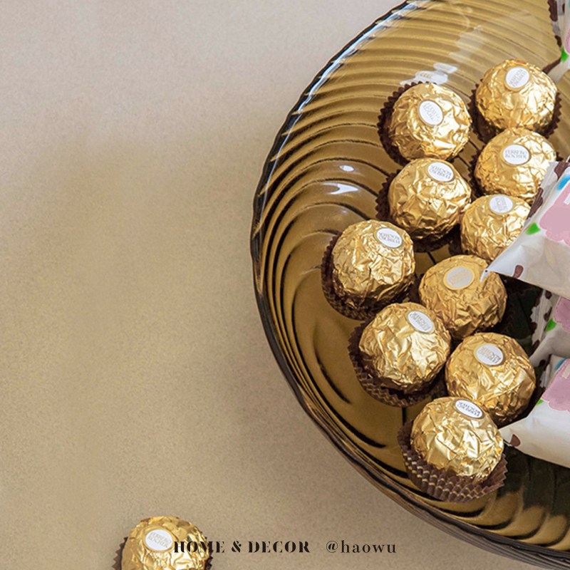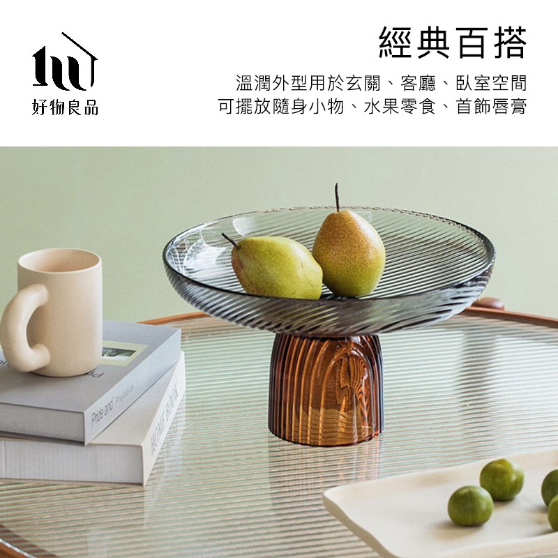 輕奢條紋玻璃盤子家用客廳零食托盤點心高顏值水果盤小吃茶盤擺放