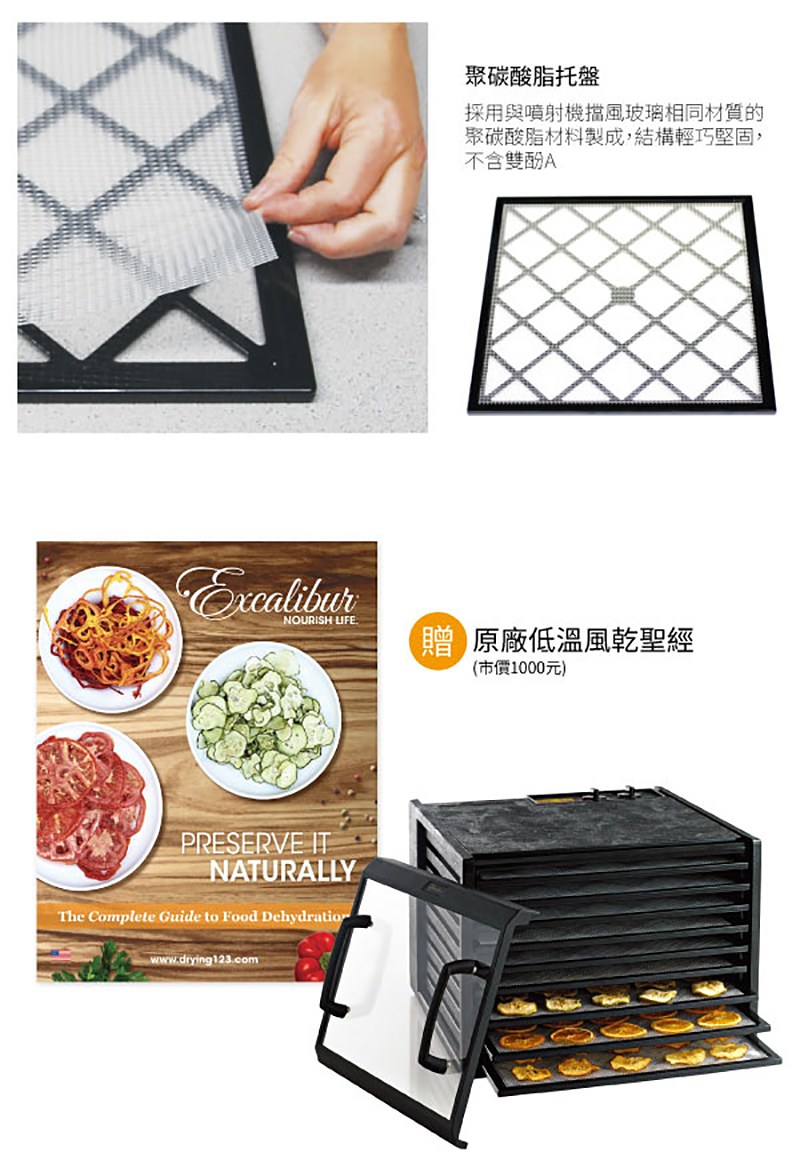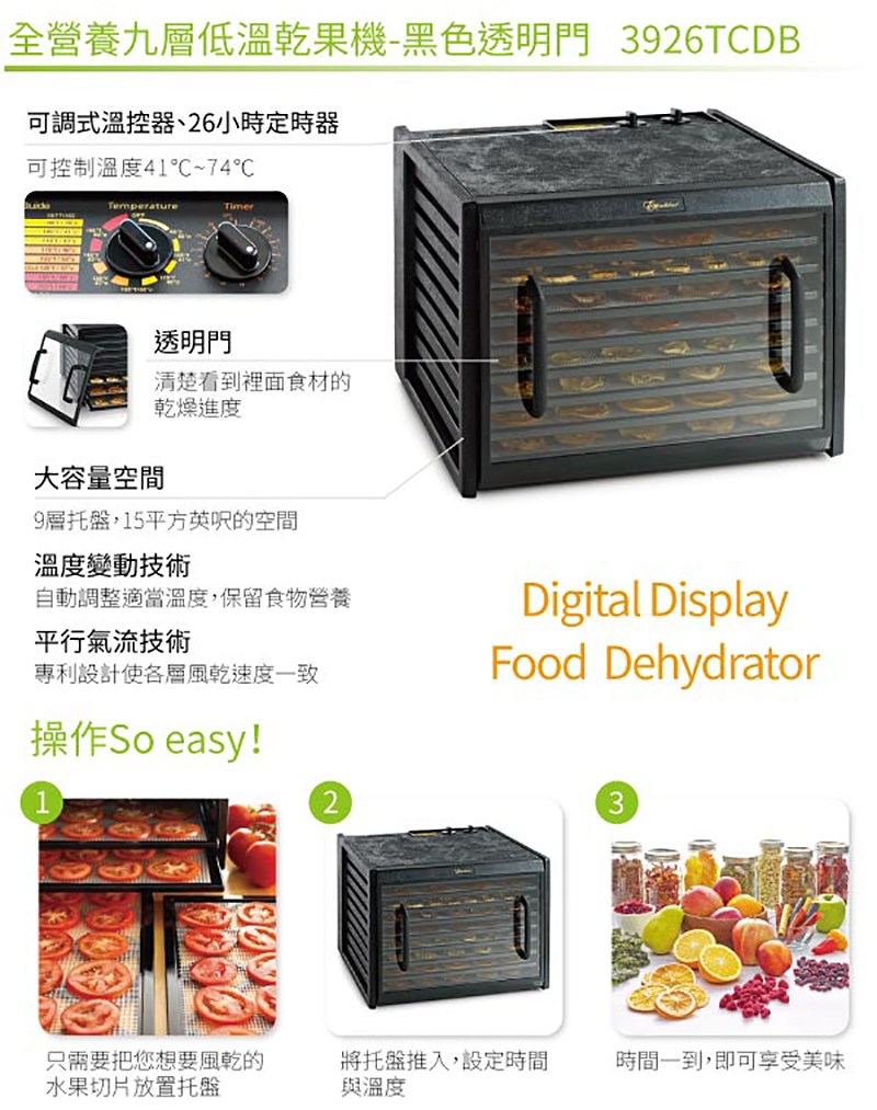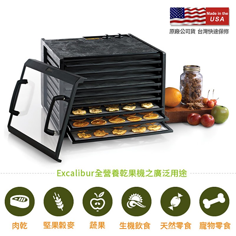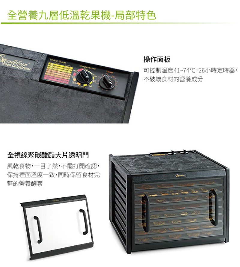 Excalibur 低溫乾果機 九層塑膠 透明門板 黑 3926TCDB 原廠