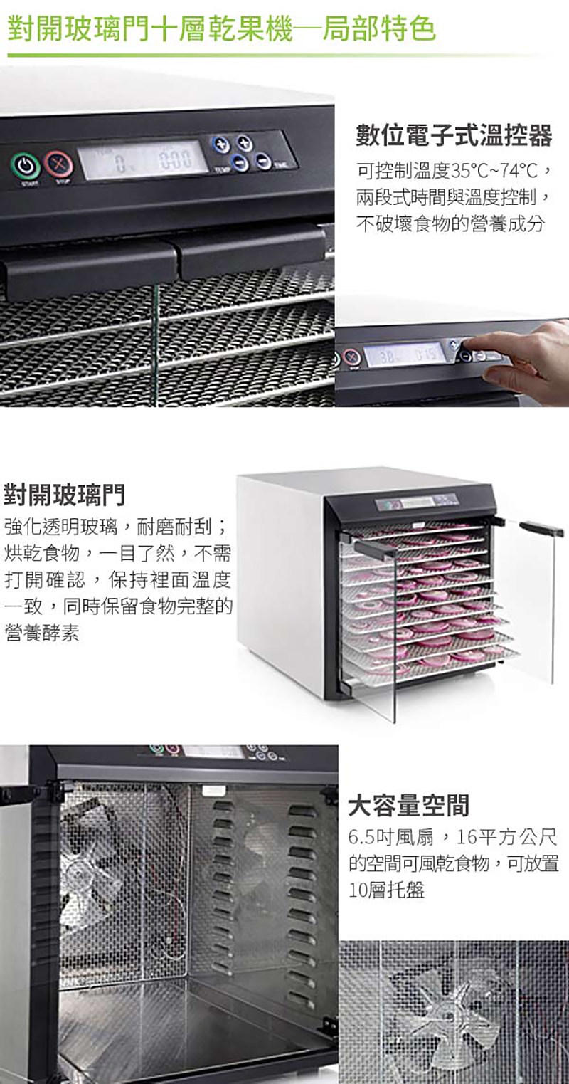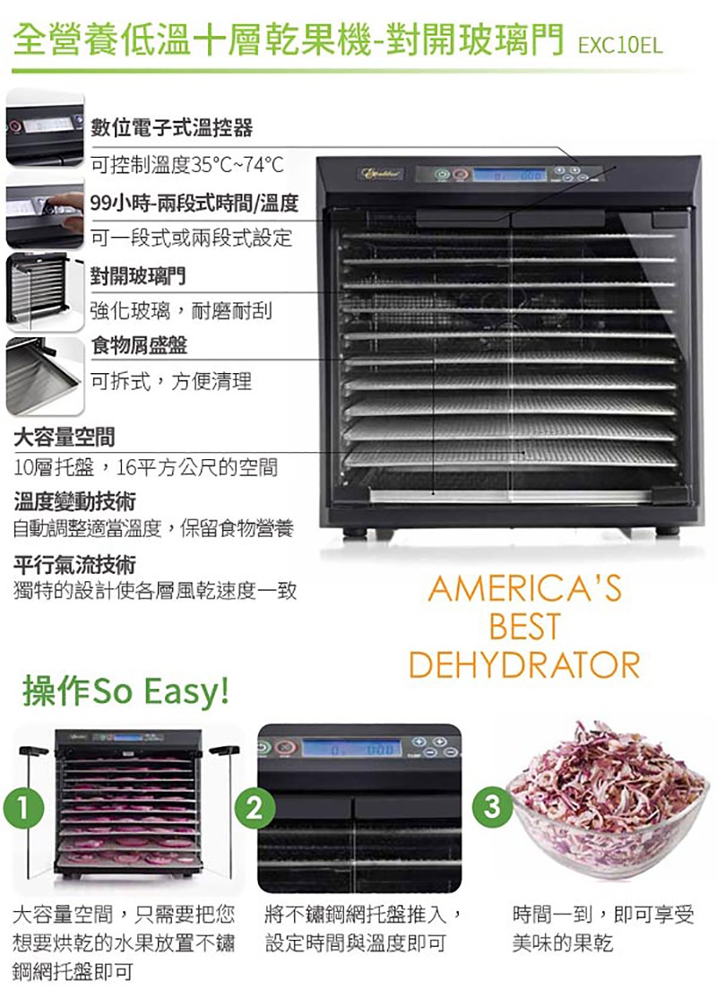 Excalibur 低溫乾果機 十層不鏽鋼 對開玻璃門 EXC10EL 原廠