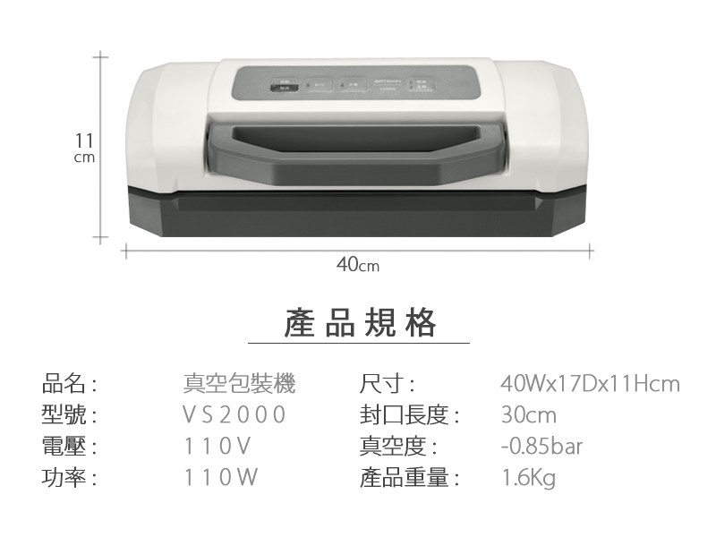 ARTISAN 真空包裝機 VS2000 原廠