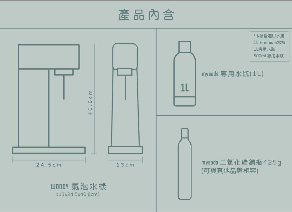 Woody木質氣泡水機 (4色) 雲杉綠 贈0.5L水瓶2入組
