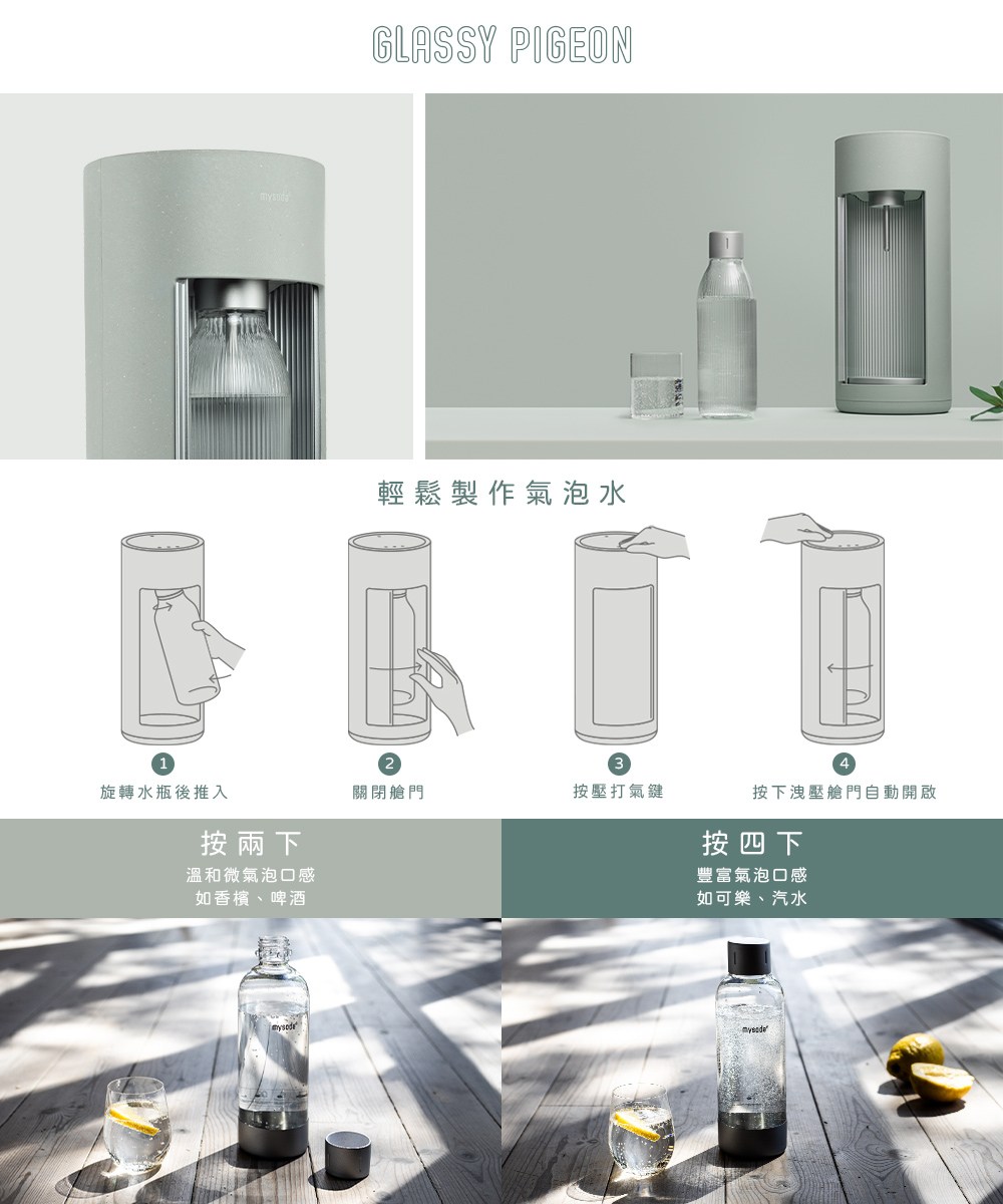【mysoda】北歐木質氣泡水機-樹冰白(加碼贈水瓶2入)