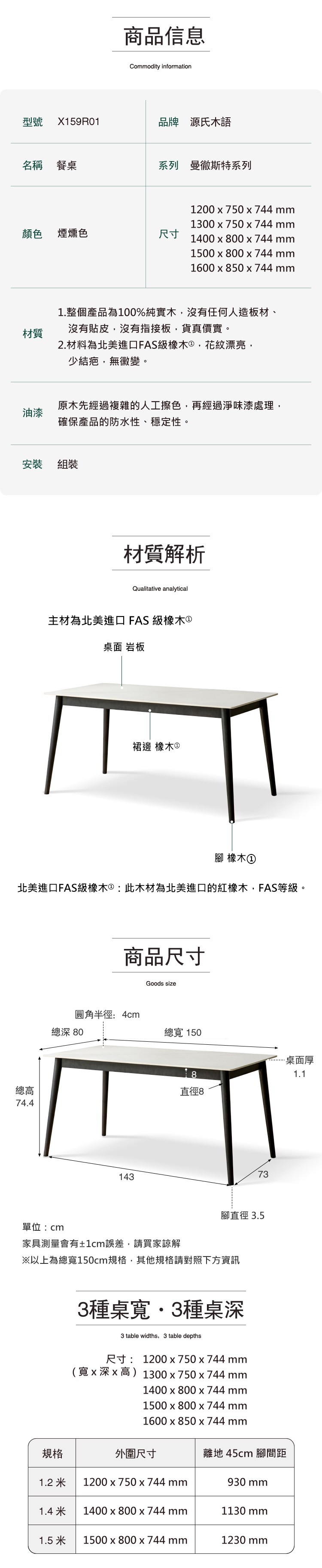 源氏木語萊可橡木煙燻色岩板餐桌1.4M X159R01