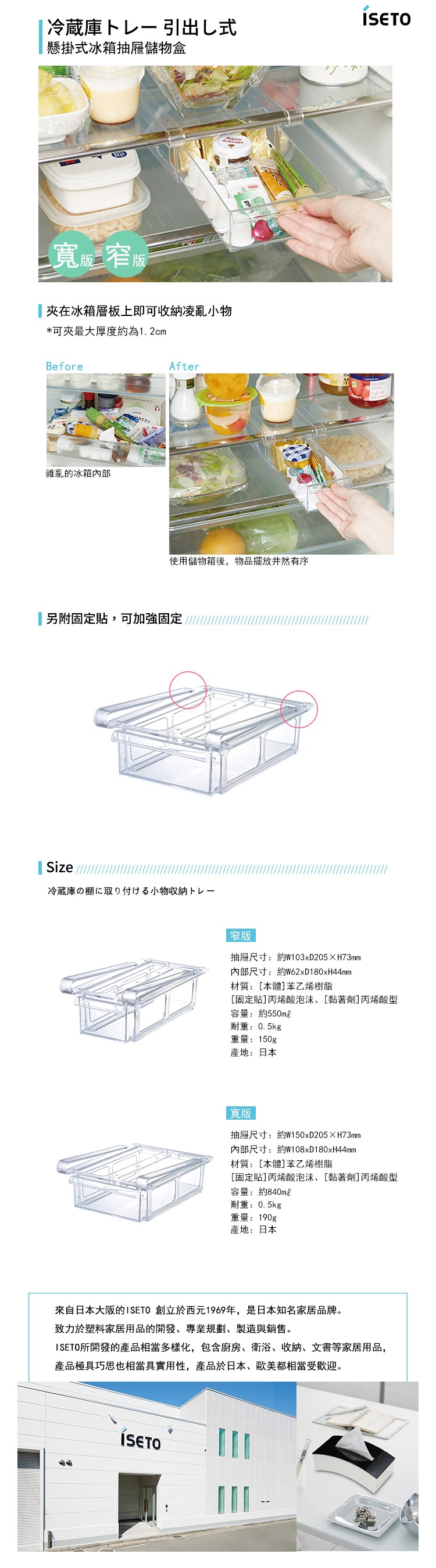 【日本ISETO】日製懸掛式冰箱抽屜儲物盒-窄版