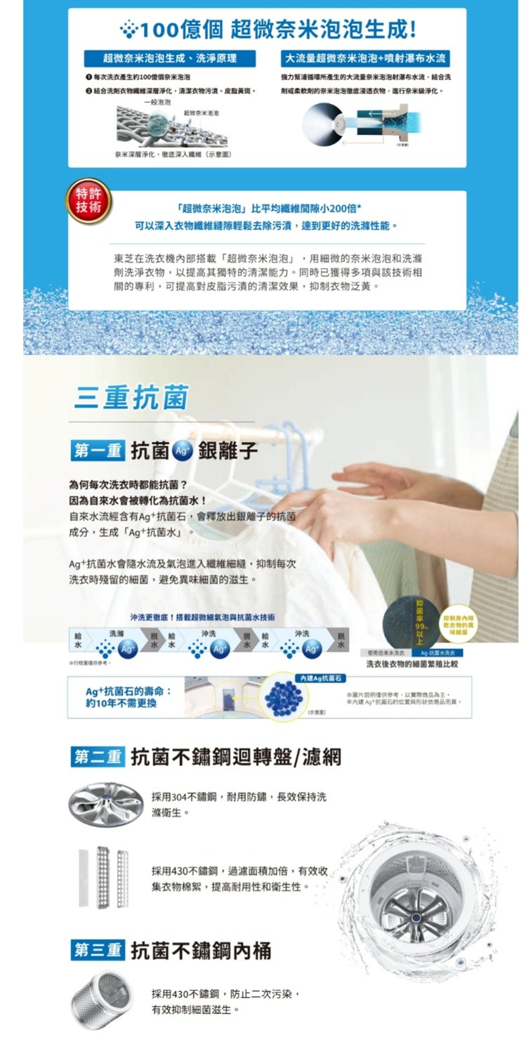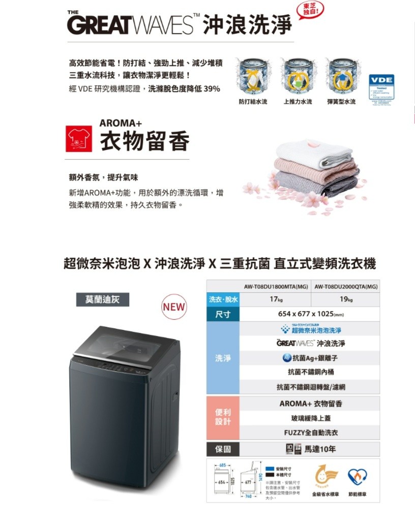 TOSHIBA 東芝 17公斤超微奈米泡泡沖浪洗淨變頻洗衣機 (AW-T08DU1800MTA(MG))