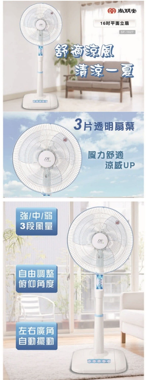 尚朋堂 16吋平網伸縮立扇 SF-1627