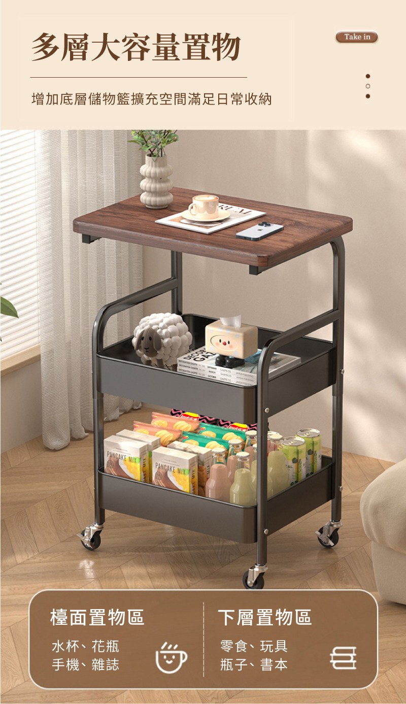 可移動茶幾小推車沙發邊幾客廳帶輪迷你茶桌邊柜邊桌置物架小桌子