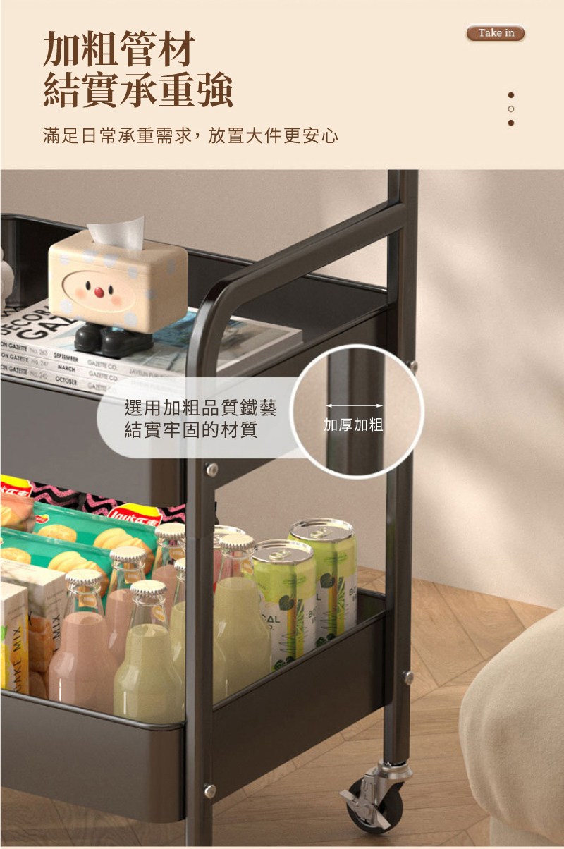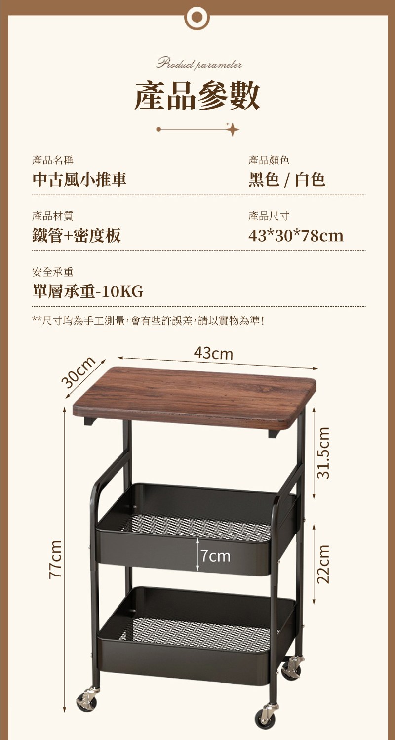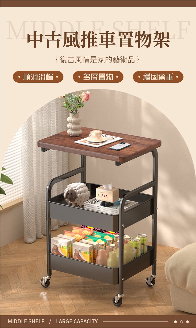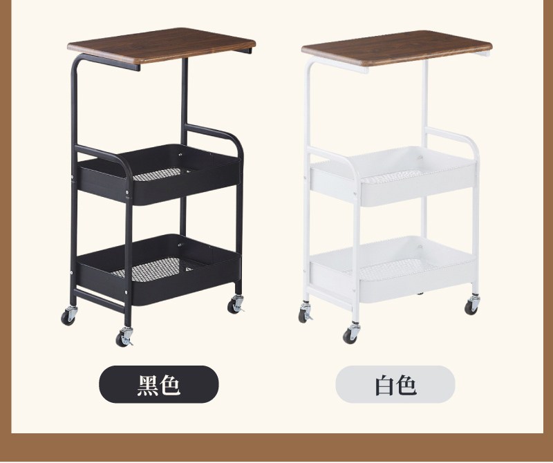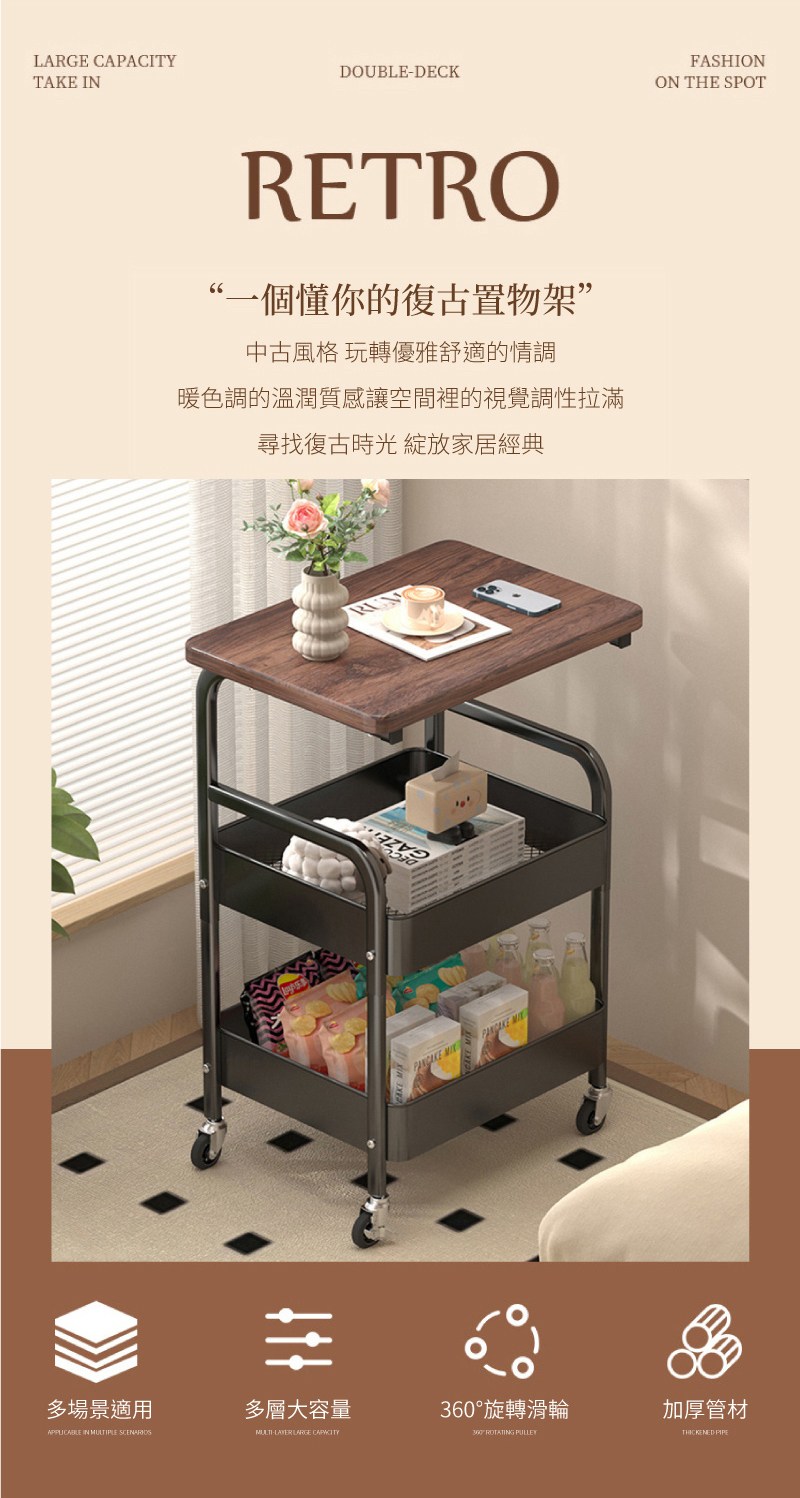 【IDEA】中古風雙層收納帶輪推車/手推車(收納置物推車/抽屜車/置物架 邊几茶几黑色