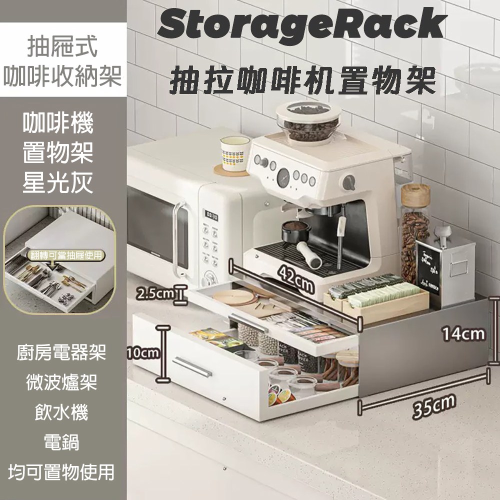 【含稅/免運】 桌面抽屜收納盒咖啡機底座廚房防塵防潮置物盒大容量小家電置物架