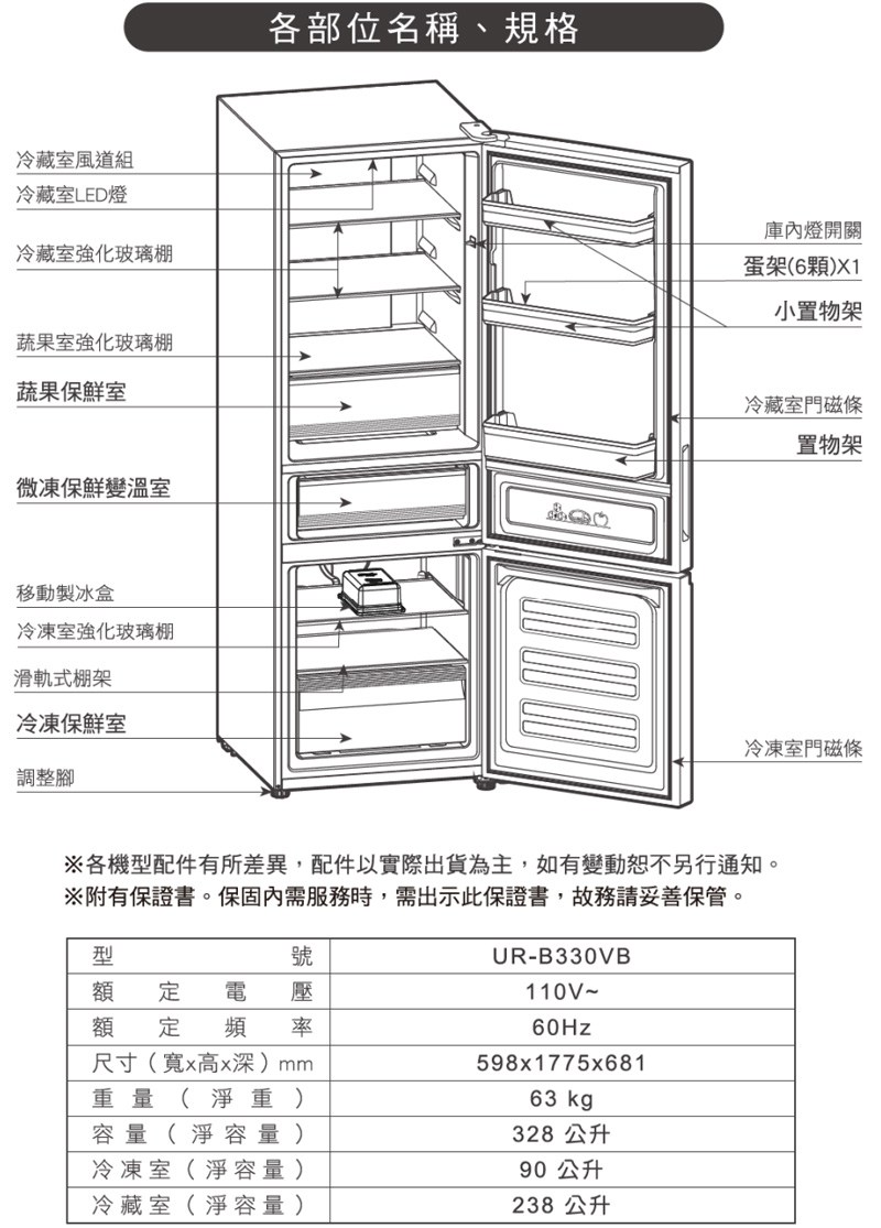 ◎購買前請特別留意預備置放商品的位置尺寸大小是否足夠,冰箱左右及後面建議預留空間,以利散熱!!