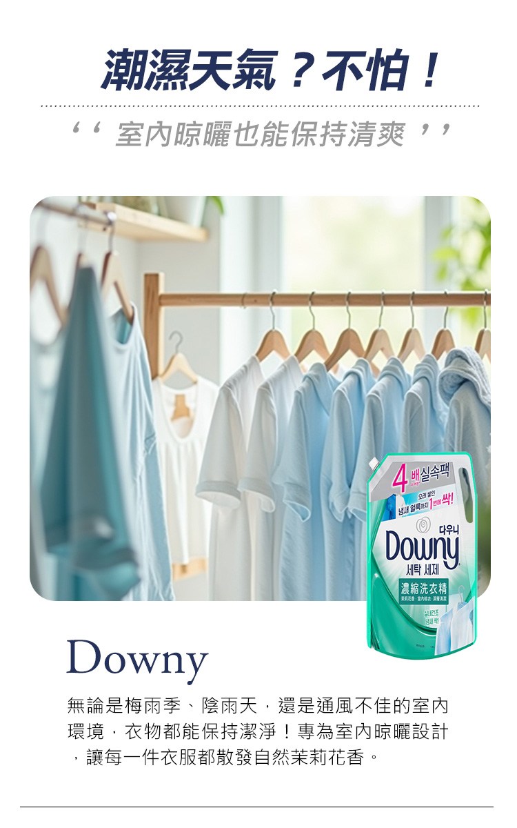 韓國 Downy 濃縮洗衣精補充包 室內晾乾 1800ml