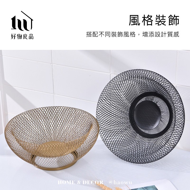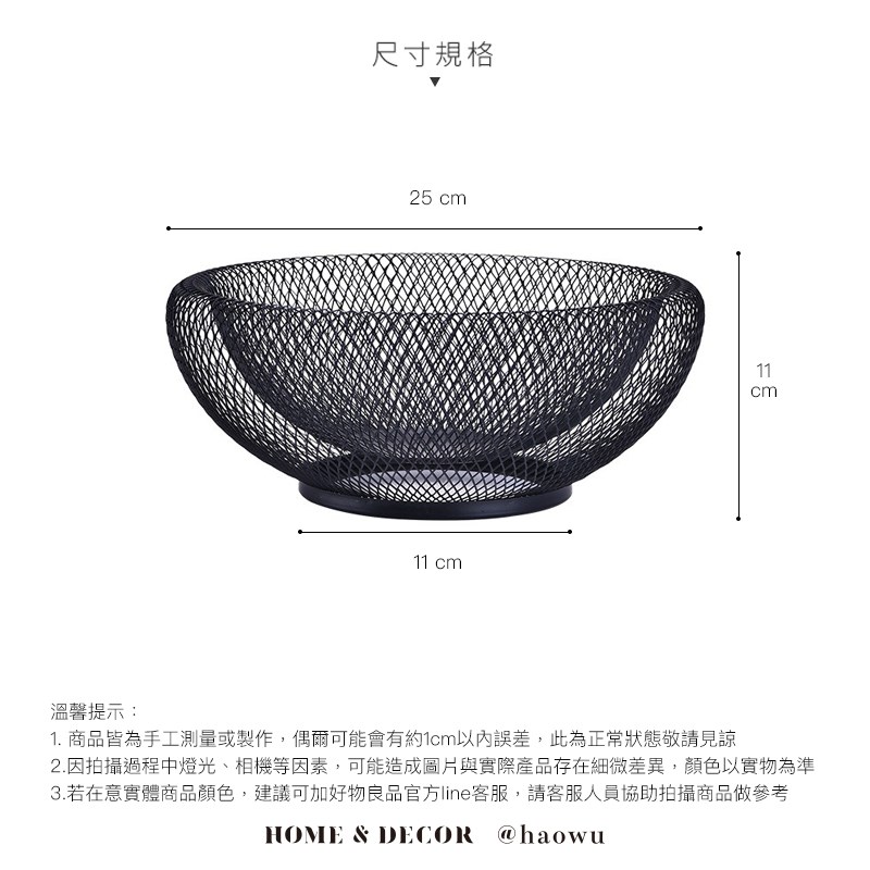 【好物良品】經典圓盆_客廳裝飾藝術金屬鏤空收納置物零食水果網籃經典圓盆_黑色