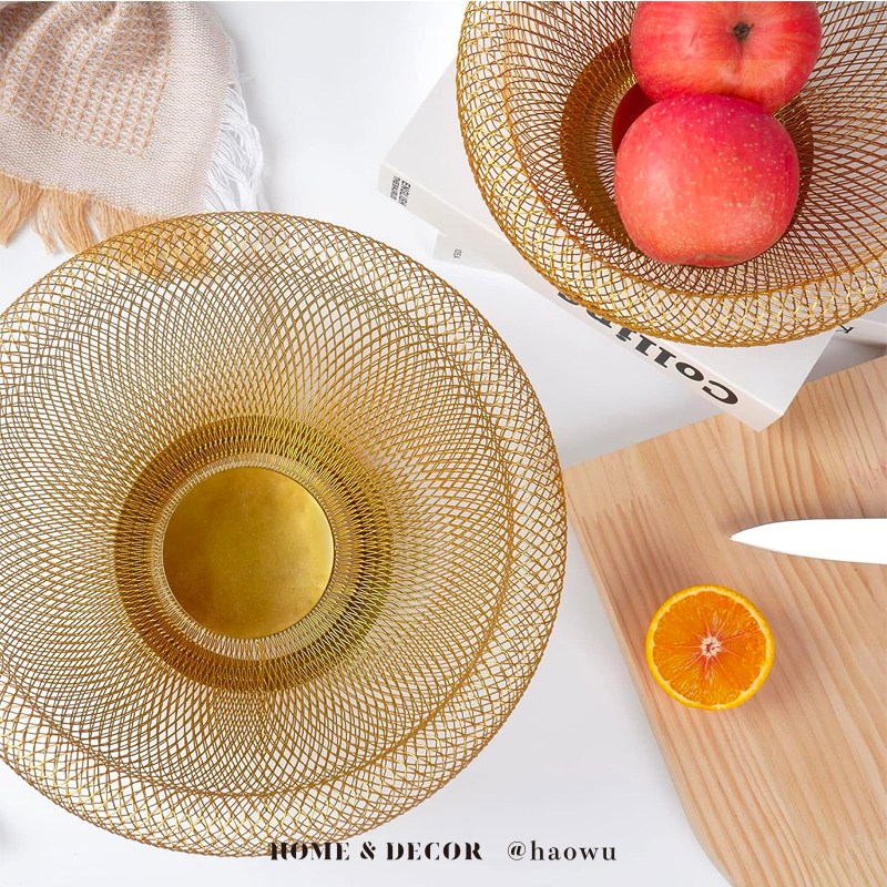 【好物良品】經典圓盆_客廳裝飾藝術金屬鏤空收納置物零食水果網籃經典圓盆_金色