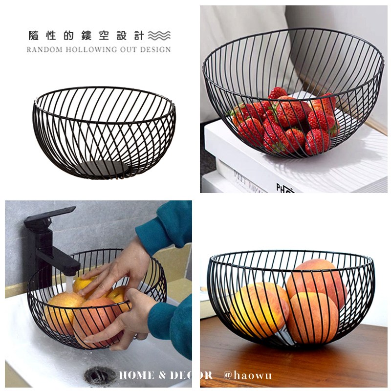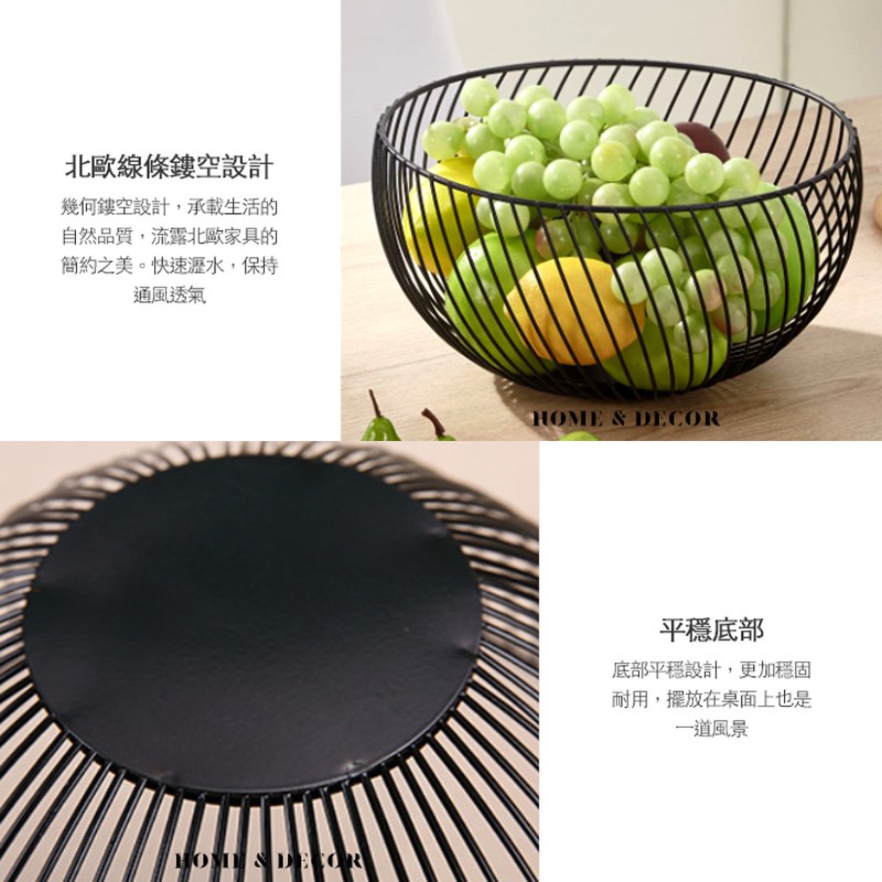 【好物良品】經典圓盆_客廳裝飾藝術金屬鏤空收納置物零食水果網籃經典圓盆_黑色