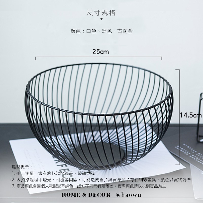 【好物良品】經典圓盆_客廳裝飾藝術金屬鏤空收納置物零食水果網籃經典圓盆_黑色