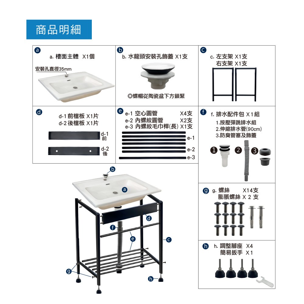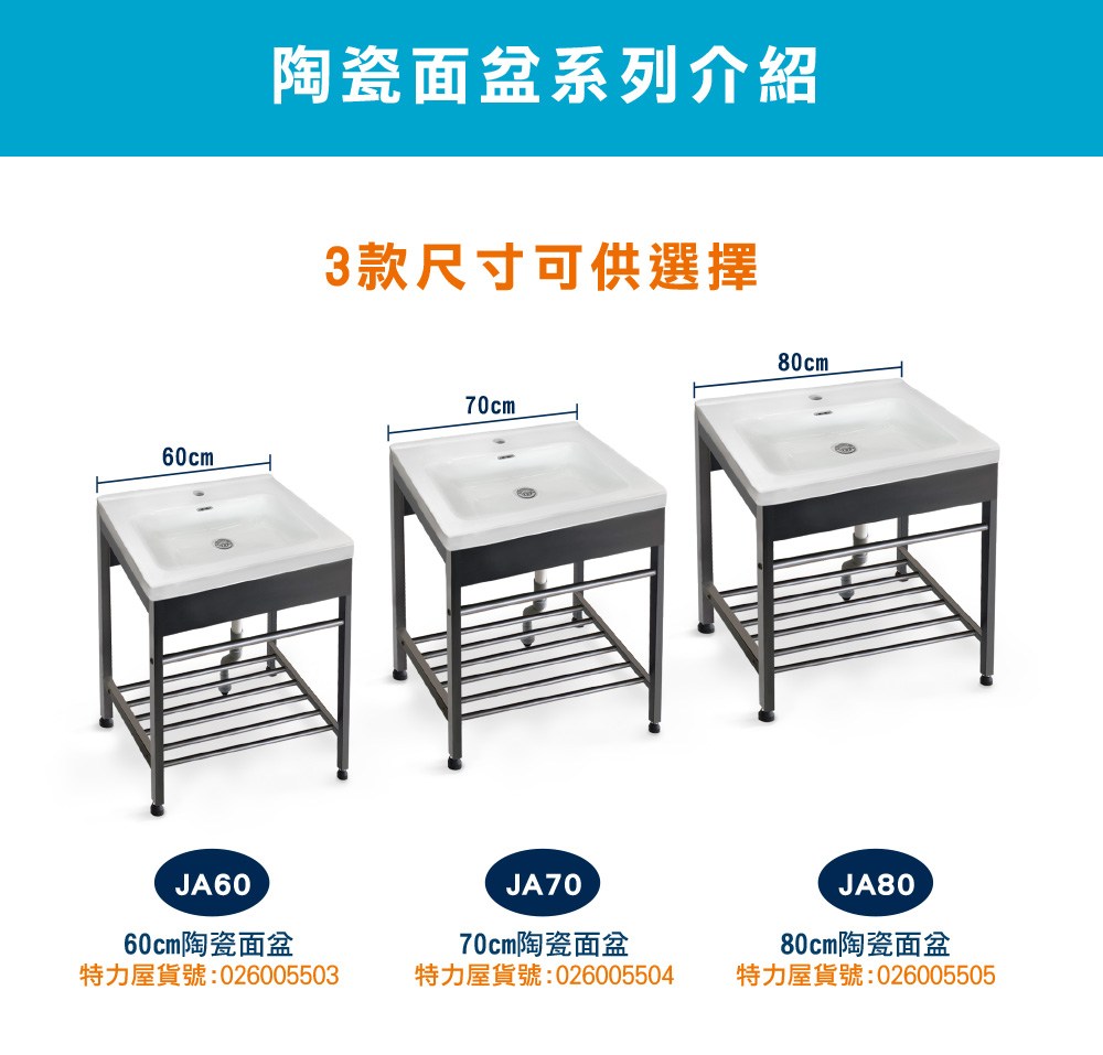 JA70 70cm陶瓷面盆(不鏽鋼槍灰色腳架) 特力屋貨號:026005504 [商品頁]