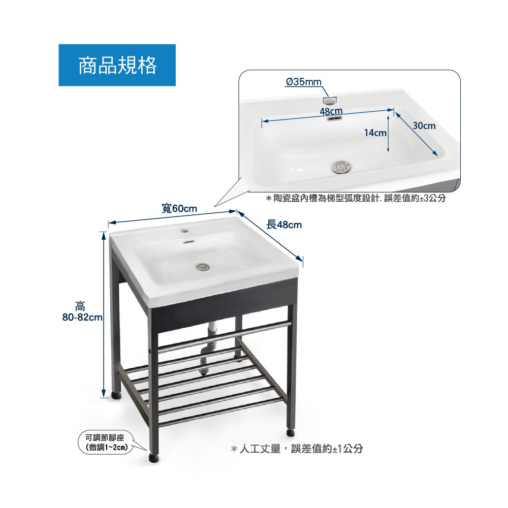 JA60 60cm陶瓷面盆(不鏽鋼槍灰色腳架) 特力屋貨號:026005503 [商品頁]