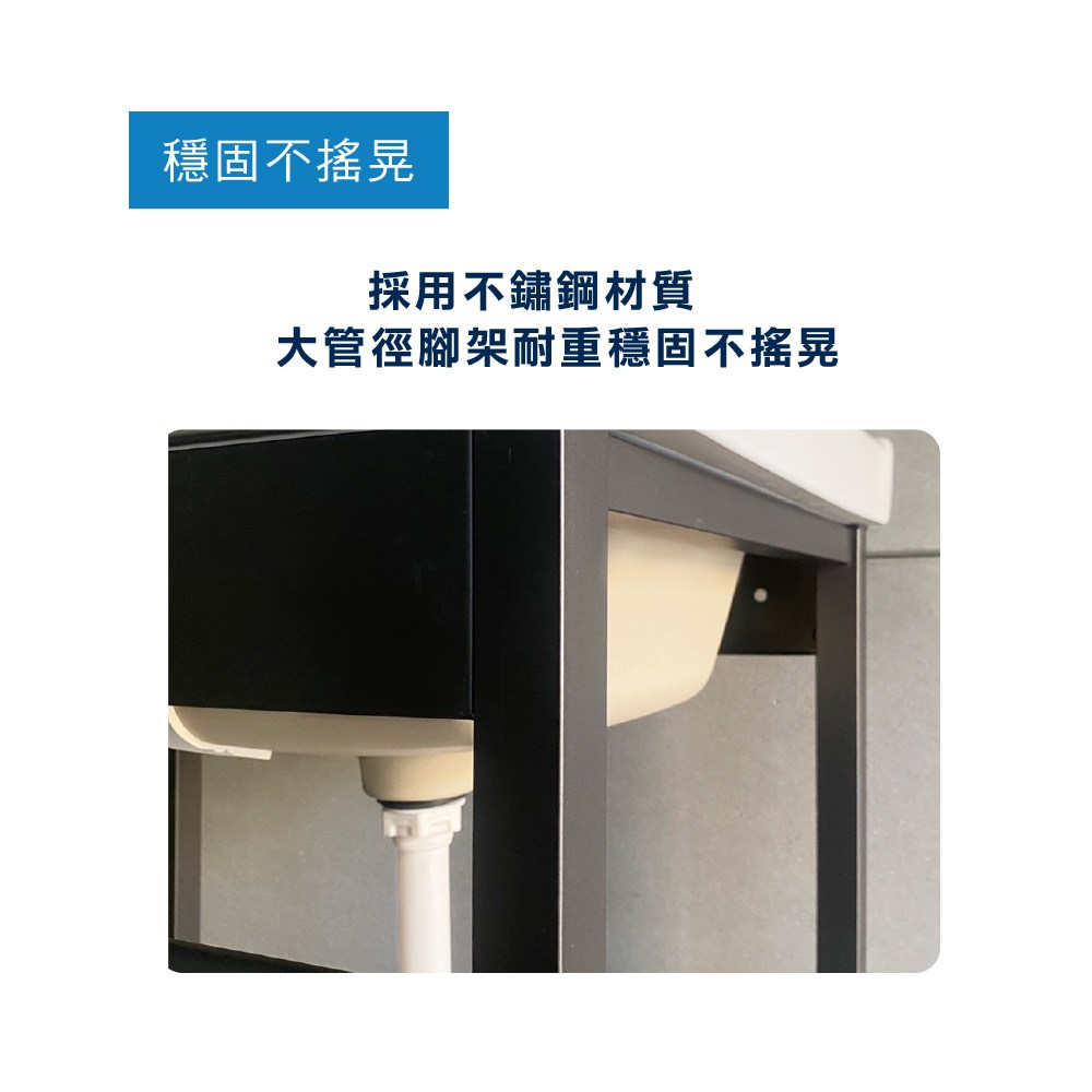 【麗室衛浴】P-301-6C 洗衣板固定式陶瓷洗衣槽 +消光黑落地支架 60*45*90