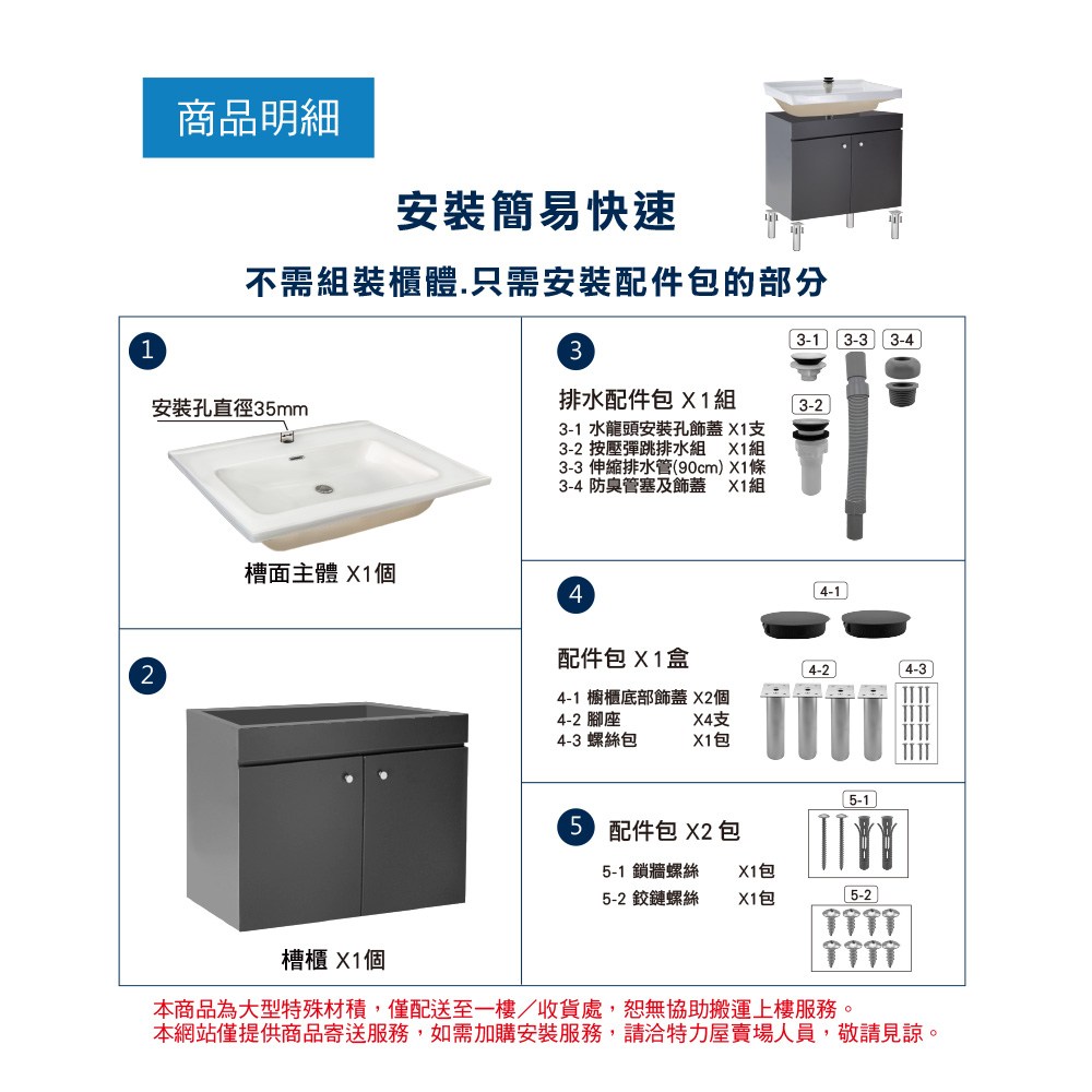 HCG臉盆浴櫃/不含水龍頭/L3060Adb+LCS3060B