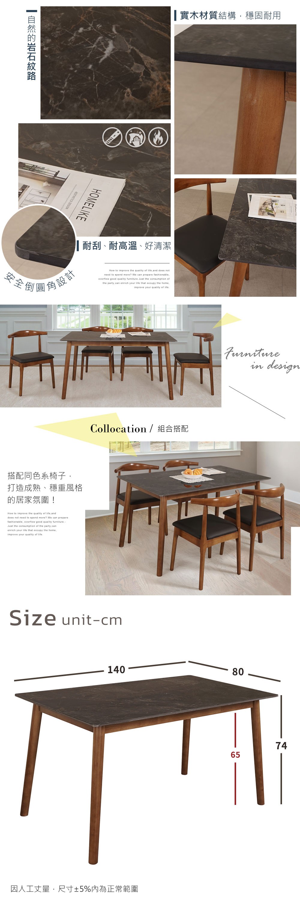 點我下載Homelike 喜家居140cm黑岩板實木餐桌-胡桃色(2517)