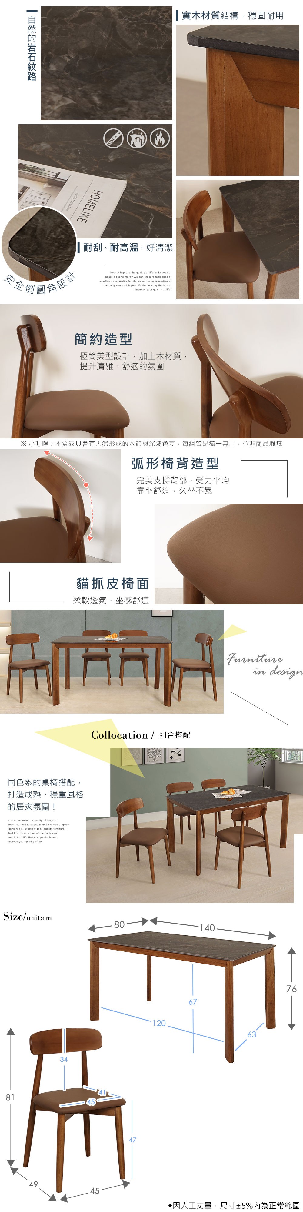 文創集 馬修實木4.7尺雲紋石面餐桌布餐椅組合(一桌四椅組合)-140x80x74cm免組