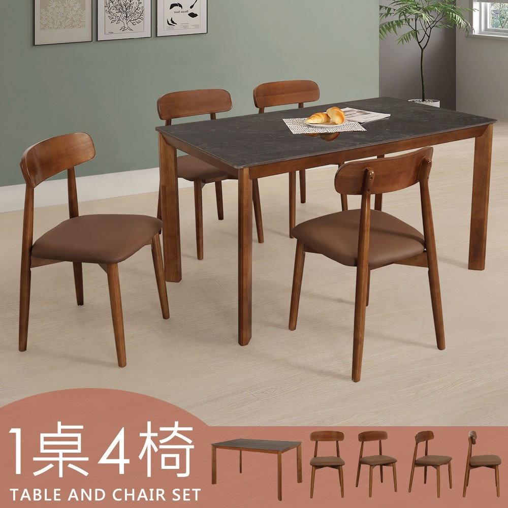 文創集 艾琳4.7尺岩板實木餐桌布餐椅組合(一桌四椅組合)-140x85x75cm免組
