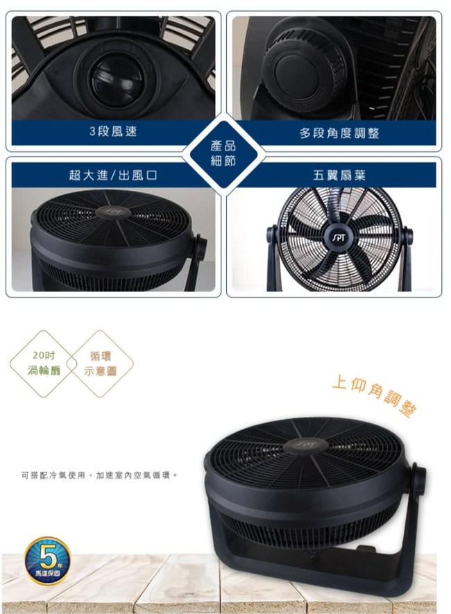 【尚朋堂】20吋強力渦輪循環扇 SF-2022